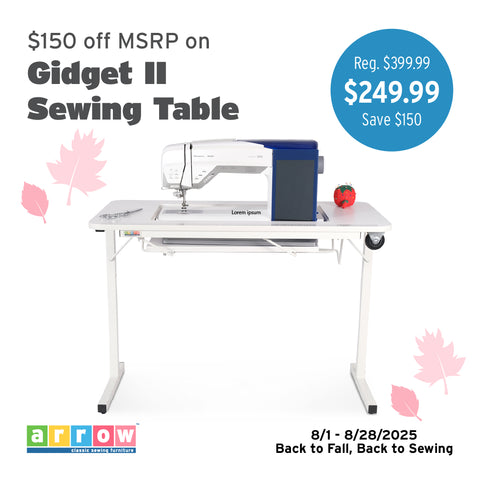 Learn more about the Arrow Gidget II Table and other Arrow sewing cabinets and furniture by visiting one of our locations. Arrow is a strongly trusted brand known and loved by the Rocky Mountain Sewing and Vacuum community.