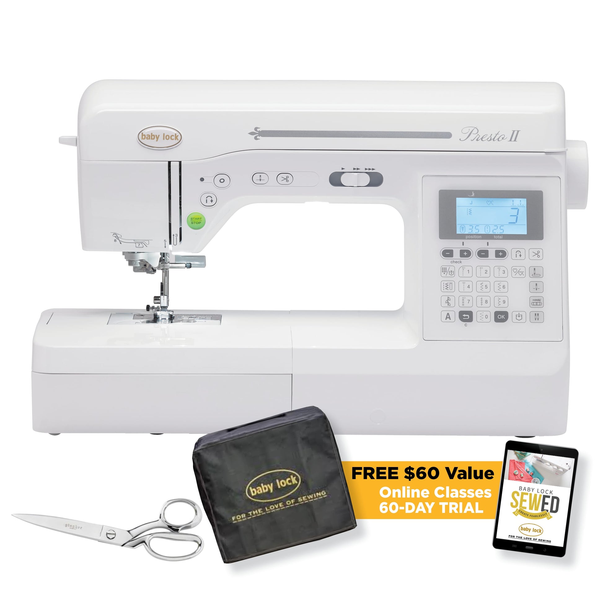 The Baby Lock Presto II quilting and sewing machine is the perfect tool for quilters and sewists. With 100 built-in stitches, an LCD screen, and a fast sewing speed of 850 stitches per minute, you can breeze through your projects. The advanced needle threader and automatic thread cutter make your work even easier, and the 4 built-in alphabets allow you to personalize your projects with ease. Get the Presto II today and experience the joy of quilting and sewing like never before.