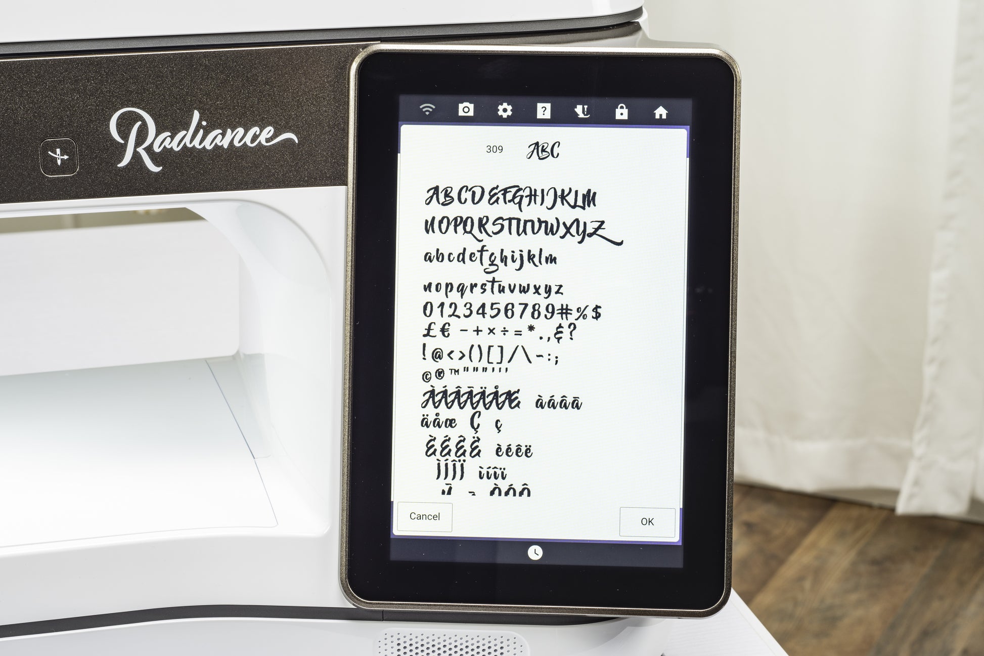 Create incredible edge-to-edge quilting projects with 15 built-in patterns. Just enter a few measurements, choose a hoop, and specify flip options, and the Radiance will set up your entire quilt. On-screen instructions and design projections guide you through each step, allowing you to quilt projects as large as 118" x 118" (2,997mm x 2,997mm).