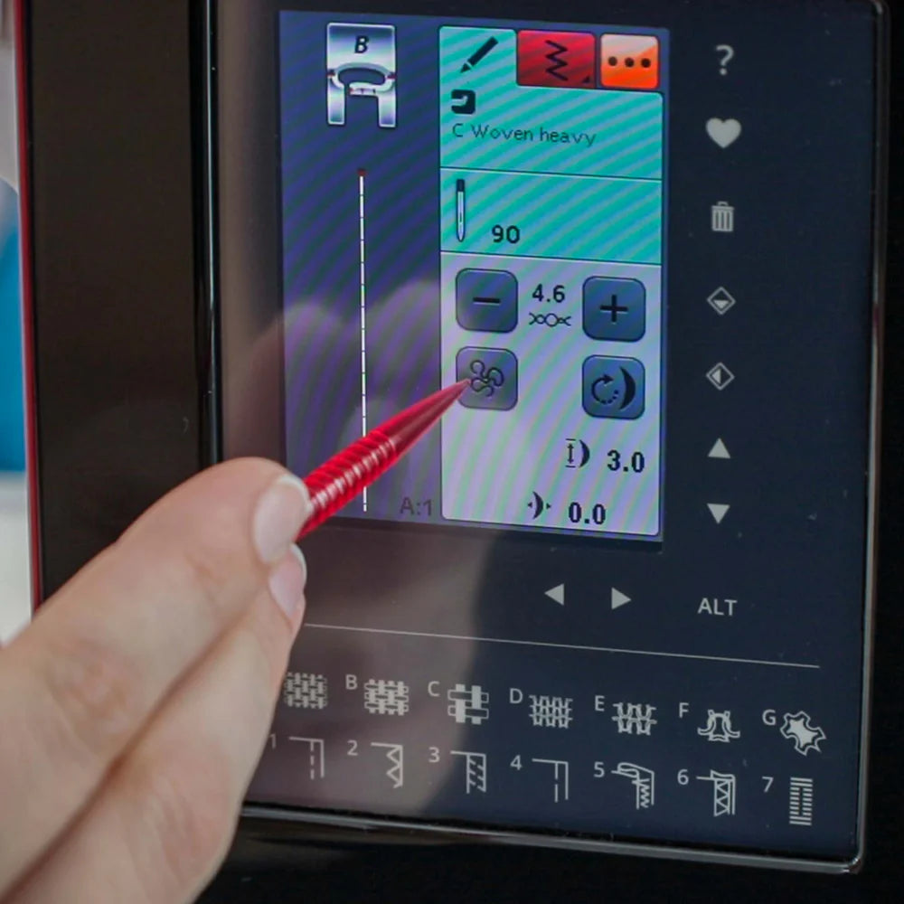 Sewing has never been easier—just select your fabric type and sewing technique. The exclusive SEWING ADVISOR automatically selects the optimal stitch, stitch width and length, thread tension, presser foot pressure, and sewing speed. Your selected stitch appears on screen along with the recommended presser foot, needle size, and needle type.