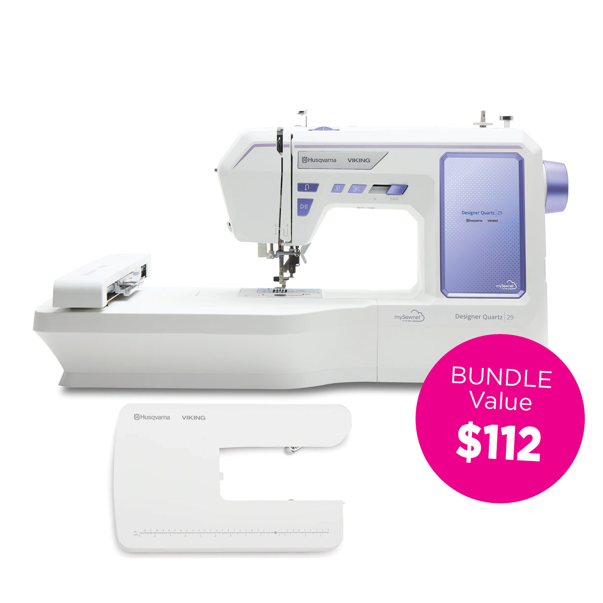 The HUSQVARNA® VIKING® DESIGNER QUARTZ™ 29 sewing and embroidery machine makes creative projects simple and enjoyable. With a large 7” (17.8 cm) color touch screen and convenient WiFi connectivity, it’s easy for beginners and seasoned sewists alike to get started. Create beautiful embroidery designs, personalized monograms, and custom stitch combinations with confidence and ease.