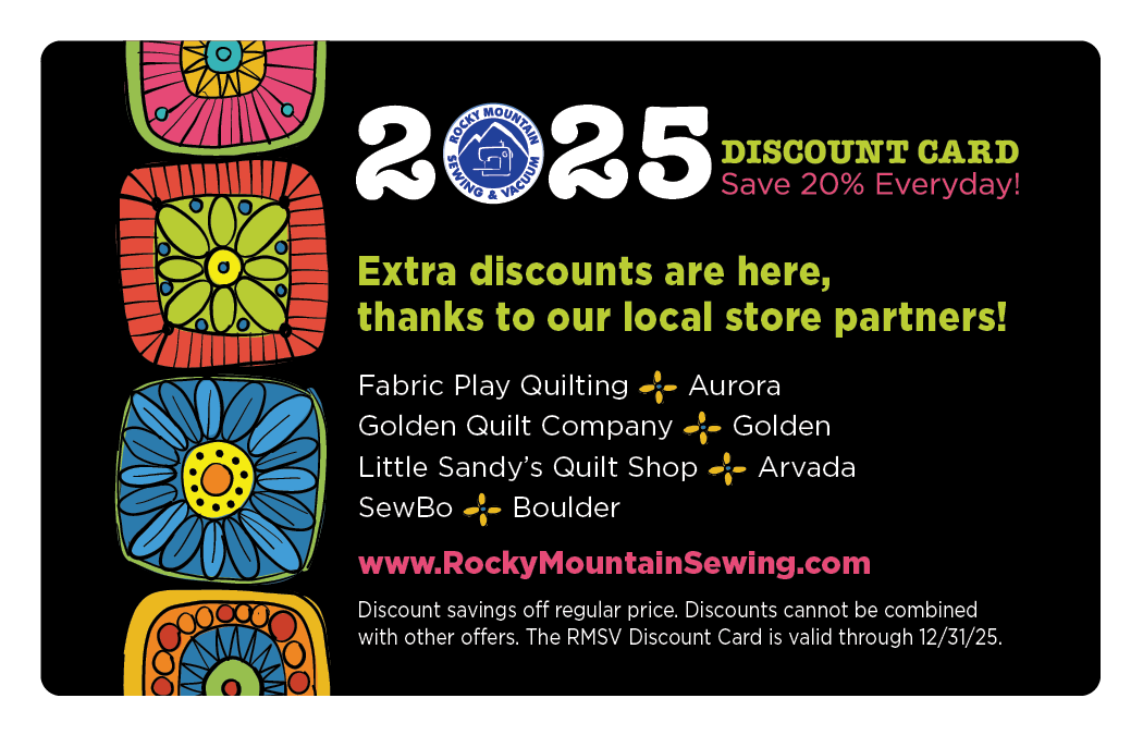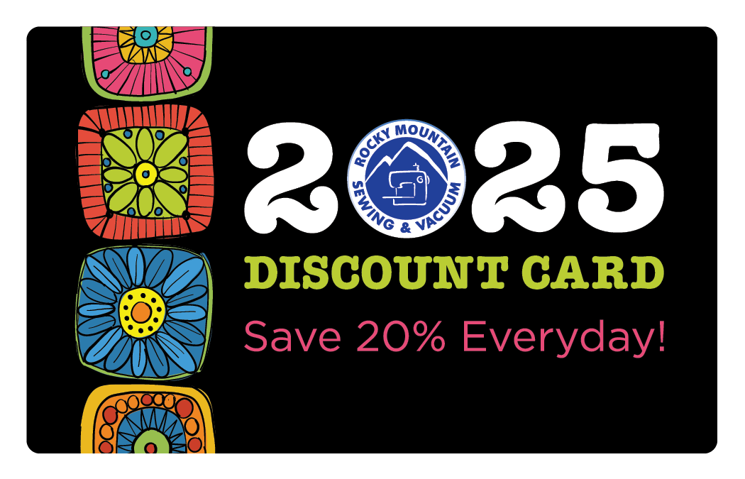 Learn more about the RMSV Discount Card Membership and other Sewing Notions by visiting one of our Rocky Mountain Sewing and Vacuum locations.