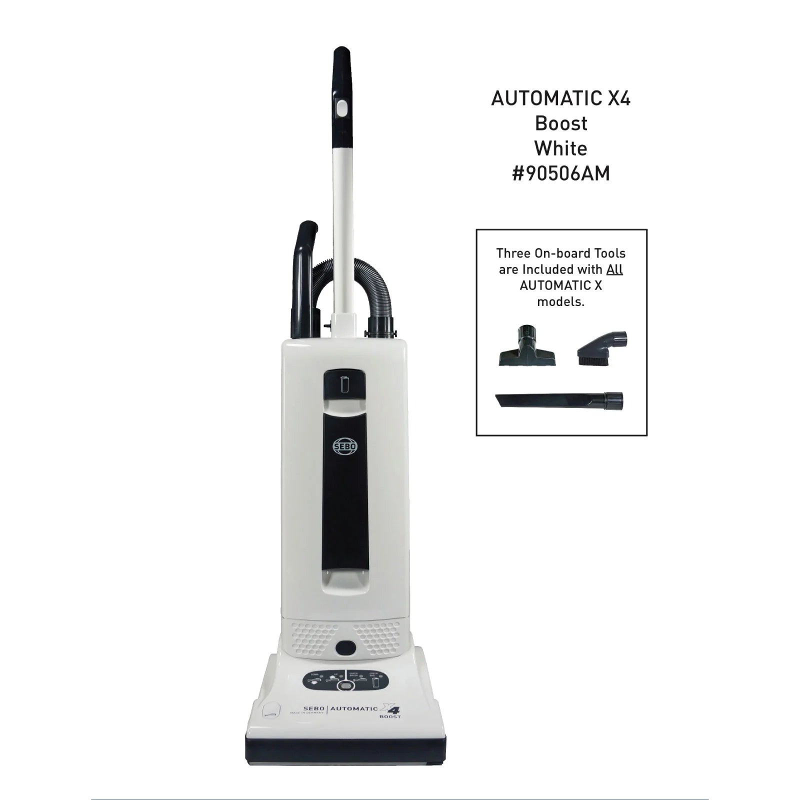 The SEBO Automatic X4 Boost is the world’s most technically advanced and uniquely easy-to-use vacuum cleaner! The 12-inch X4 Boost features a truly automatic height adjustment, using an electronic controller that measures the resistance of the spinning brush roller against the floor to signal up or down adjustments, which ensures optimal performance on both carpets and hard floors.